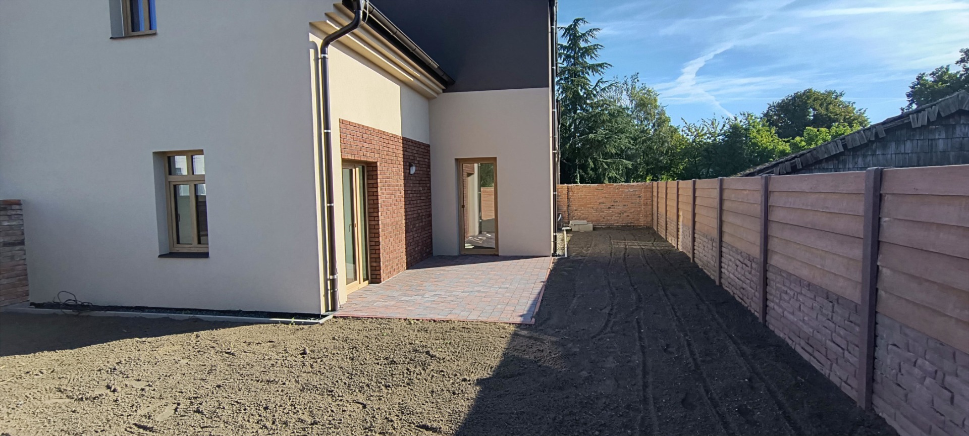Okna s izolačními trojskly v dekoru reálného dřeva. Datové rozvody jsou ve všech pokojích. Příprava pro: Předokenní žaluzie (boxy skryté ve fasádě) pro ovládání ovladačem nebo telefonem, elektronický zabezpečovací systém, nabíjecí stanici pro elektromobil, fotovoltaika. Každá z jednotek má terasu o výměře 16m2 se zahradou, poskytující soukromí a ideální místo k odpočinku.