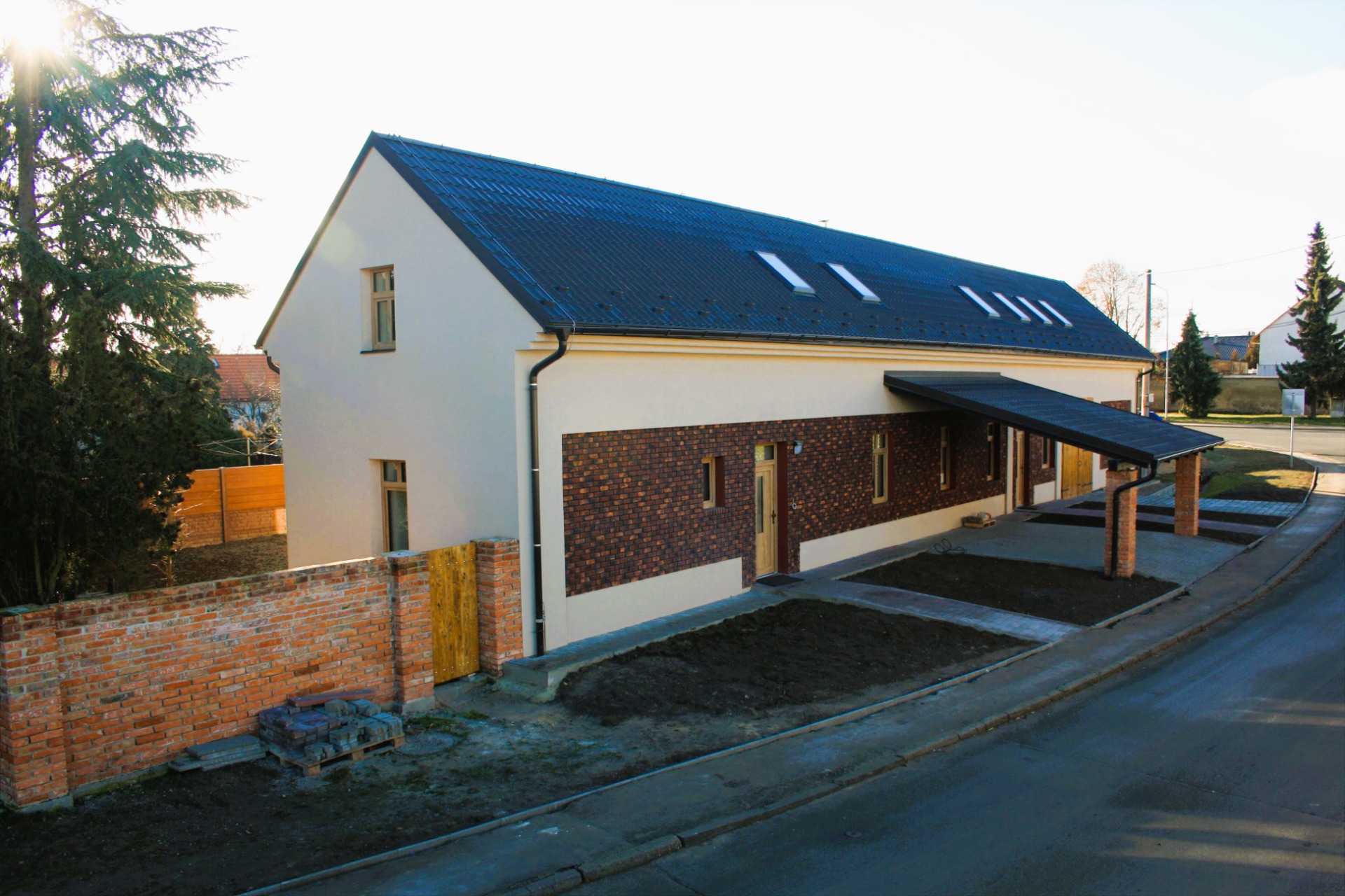 Společná zeď s druhou částí domu má v průměru 60cm, dispozice jsou navíc navrženy tak, aby žádná obytná část domu nesousedila s obytnou místností ve druhé části domu.